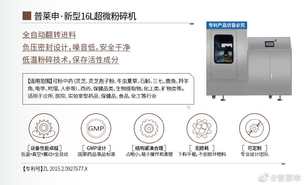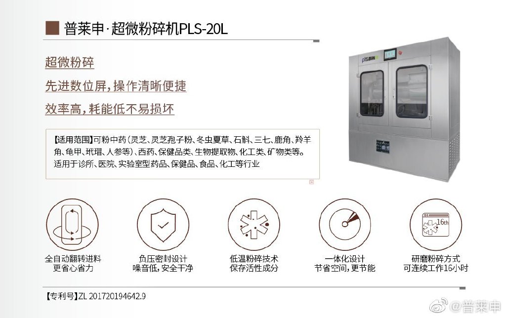 1、低温  普莱申采用低温冷冻的粉碎方式,使得中药粉碎过成减少粉尘