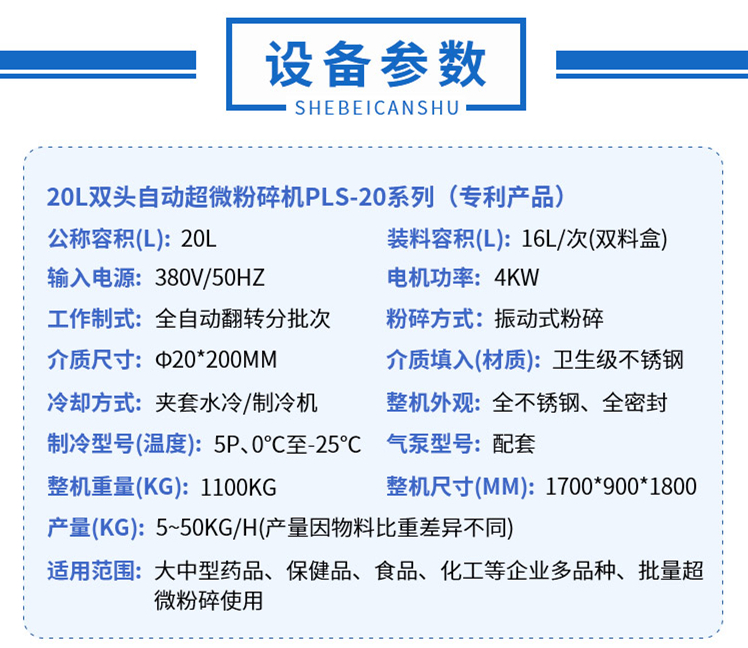 PLS-20L纳米级中药超微粉碎机针对不同药材的微粉工程学和生产安全性的研究有待深入是否以及如何对中药材进行超微粉碎应视药材的类型,如含糖类、油类、纤维素、淀粉类、矿物类等,采用不同的粉碎方法,研制相应的粉碎设备。刘春红等认为,可进一步研究药材的预处理,如采用热处理、冷处理、水处理及油处理等方法。在中药超微粉碎过程中,还有设备升温问题,降温处理后生产成本升高问题及药物粘壁问题等,均有待解决。